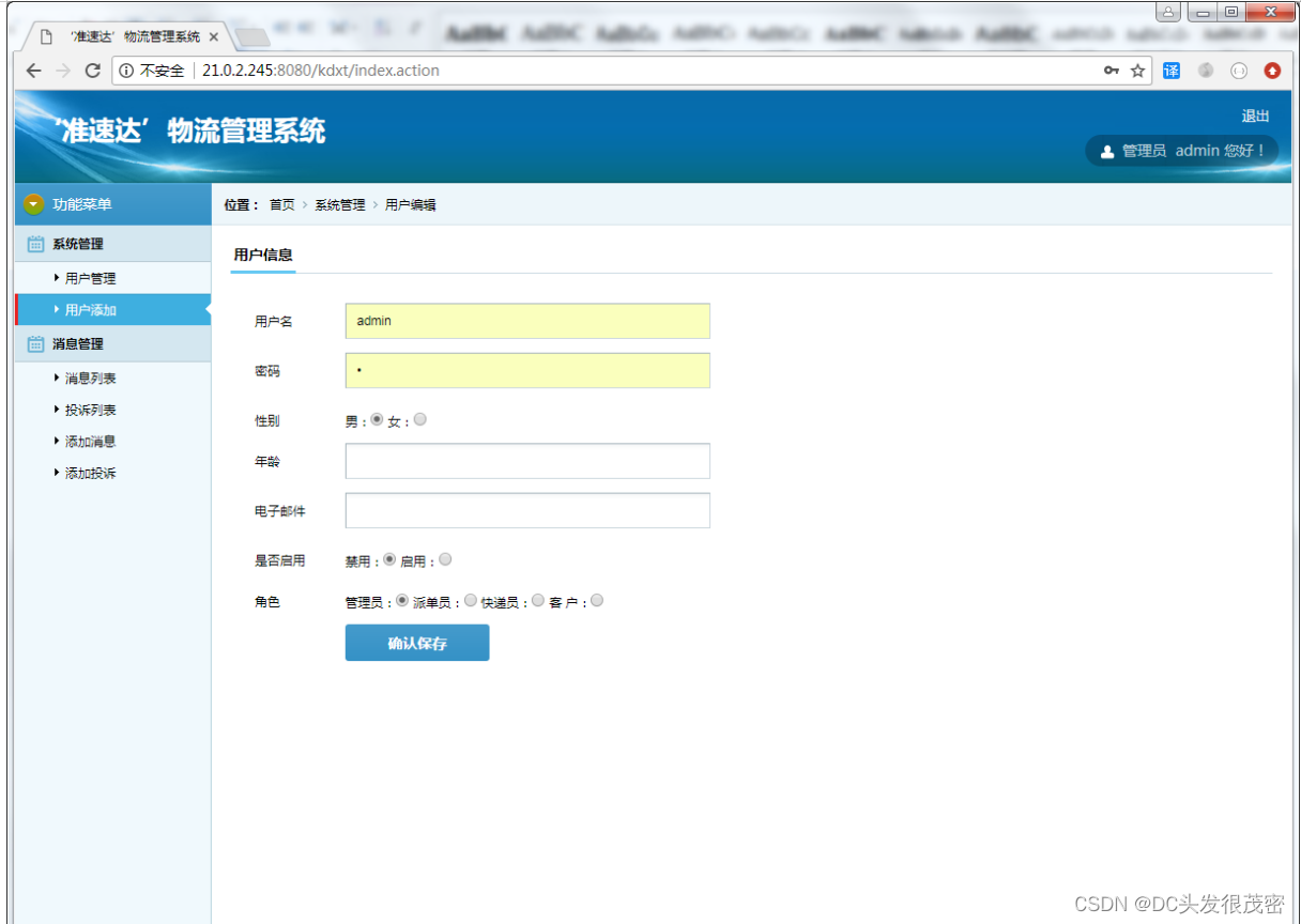 用户添加界面主要是超级管理员添加各种用户角色的地方。