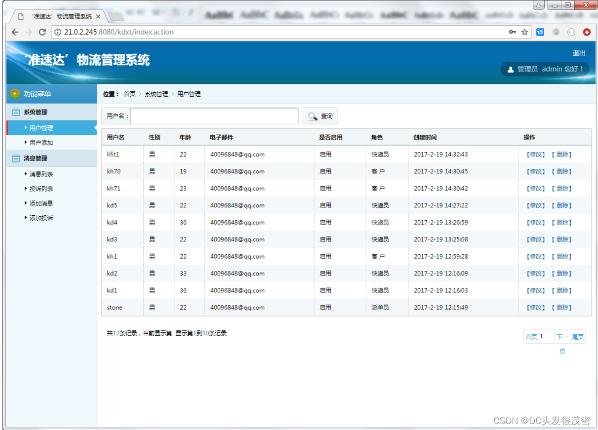 随着我国经济的发展,人们生活水平的不断提高,人们对消费物流的要求就越来越高,伴随这些需求物流公司孕育而生,随之而来的就是一个合格的物流系统。物流系统可以配合物流公司合理分配快递人员。