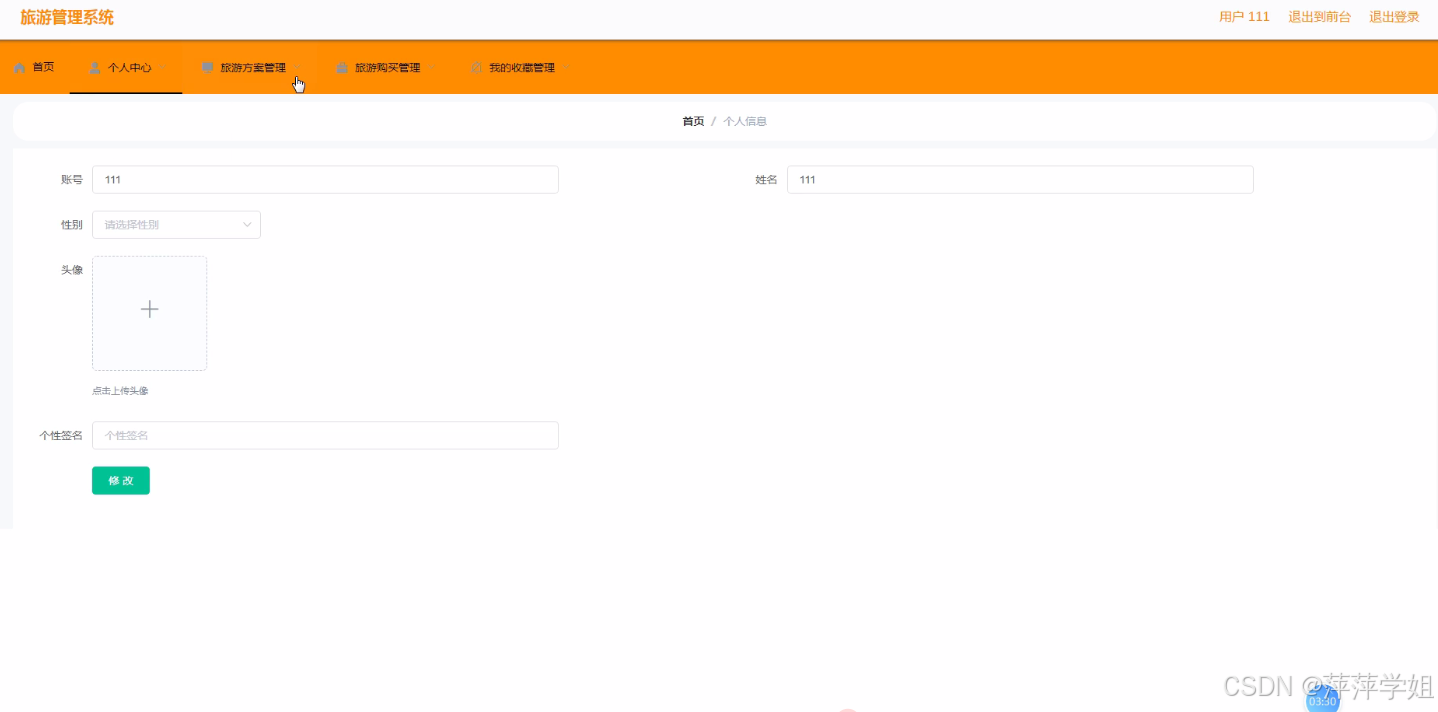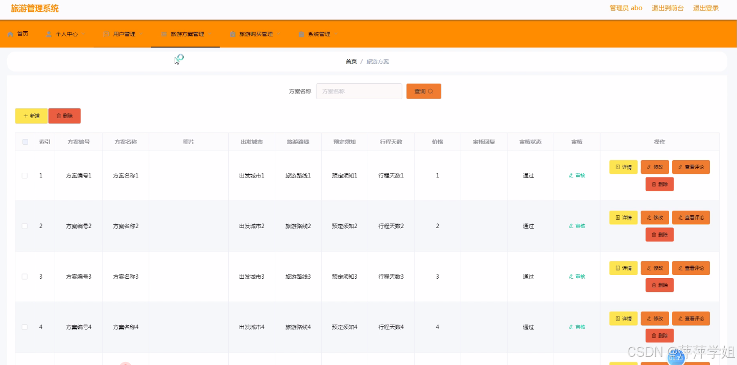 本文从管理员、用户的功能要求出发,旅游管理系统中的功能模块主要是实现管理员;首页、个人中心、用户管理、旅游方案管理、旅游购买管理、系统管理,用户;首页、个人中心、旅游方案管理、旅游购买管理、我的收藏管理。前台首页;首页、旅游方案、旅游资讯、个人中心、后台管理等功能。经过认真细致的研究,精心准备和规划,最后测试成功,系统可以正常使用。分析功能调整与旅游管理系统实现的实际需求相结合,讨论了Java开发旅游管理系统的使用。