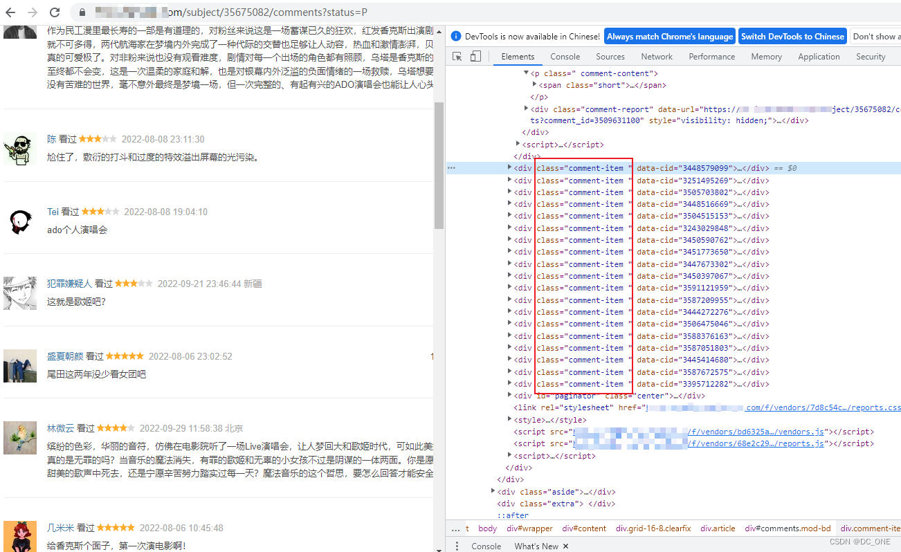 通过观察页面分析,可以通过css选择器获取具有class=’comment-item’的集合