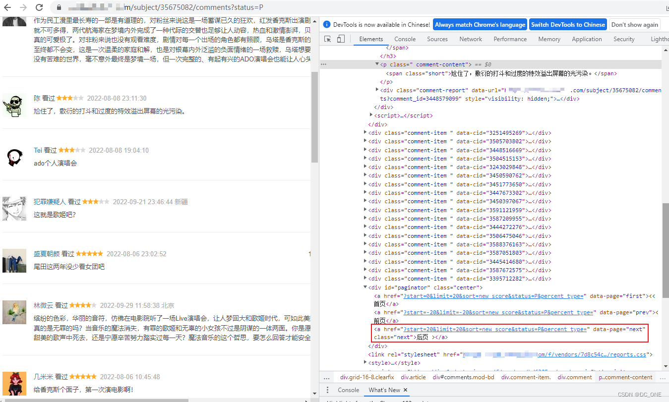 start_urls = ['https://movie.xxxx.com/subject/35675082/comments?limit=20&status=P&sort=new_score']