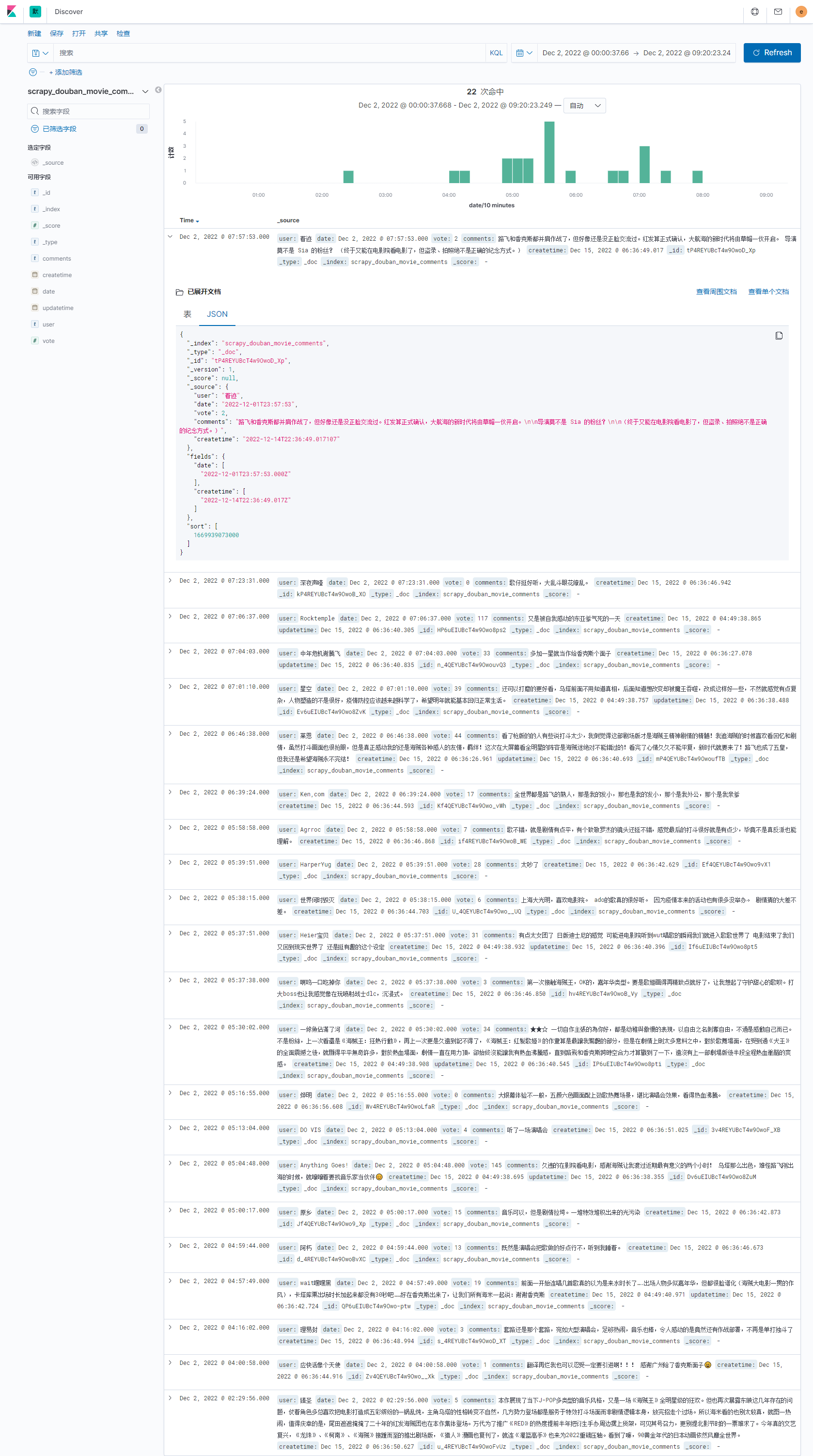2022-12-14 22:36:56 [elasticsearch] INFO: POST http://es-01.xadocker.cn:9200/scrapy_douban_movie_comments/_doc [status:201 request:0.008s]