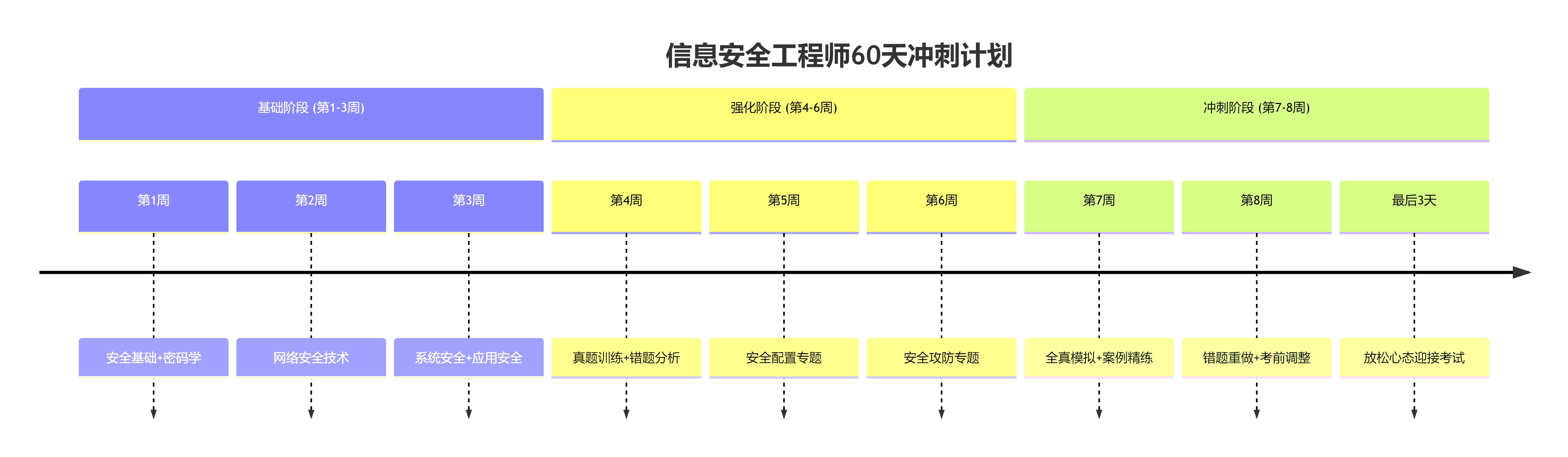 信息安全工程师是当下最热门的IT认证之一,零基础两个月时间完全足够!关键是现在就开始行动,跟着计划一步一步来。