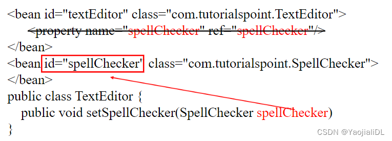 <bean id="spellChecker" class="com.tutorialspoint.SpellChecker">