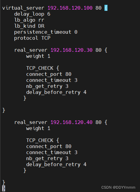 check模块:负责健康检查,检查后端真实服务器的健康检查。配置真实服务器的模块当中