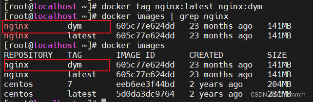 docker tag nginx:latest nginx:dym