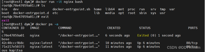 docker run -itd --name test1 nginx:latest /bin/bash