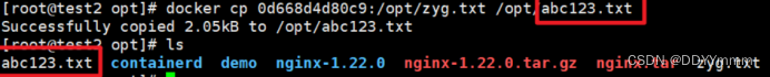docker cp zyg.txt 0d668d4d80c9:/opt/