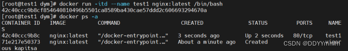 docker run -itd --name test2 nginx:latest