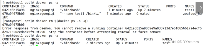 格式:docker rm [-f] 容器ID/名称