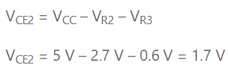 在这种情况下,Q2上的集电极到发射极电压降为:
