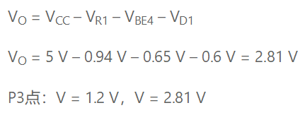 请注意,当晶体管Q3刚刚导通时,VBE3 = 0.6 V,这意味着流过R3的电流为0.6 V/470 Ω = 1.27 mA。在线性活动区工作时,Q2的集电极电流为0.97 mA × 1.27 mA = 1.23 mA。