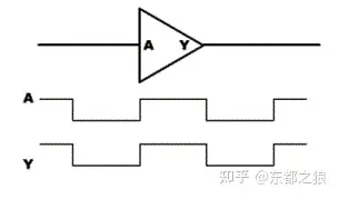 组合逻辑应用中比较常见的是反相器(以74VHC04为例),是一种输出(Y)与输入(A)相反的逻辑门,如图1所示。