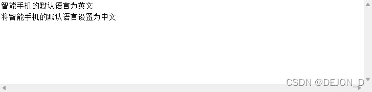 System.out.println("将智能手机的默认语言设置为"+defaultLanguage);//输出信息