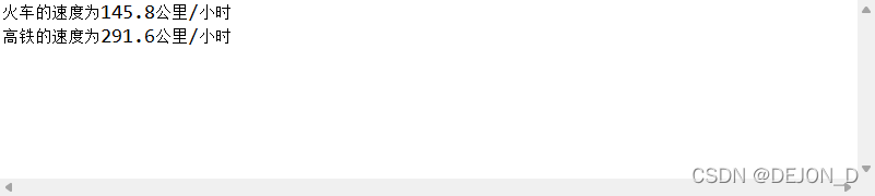 System.out.println("火车的速度为"+P+"公里/小时");//输出信息