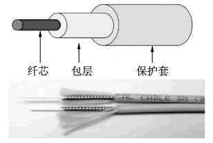 光纤是一种传输光信号的细而柔软的媒质,多数光纤在使用前必须由几层保护结构包裹,如图所示。光纤的主要作用是把要传送的数据由电信号转换为光信号进行通信。在光纤的两端分别装有“光猫”进行信号转换。