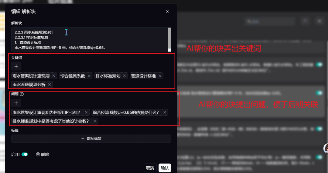 最“变态”的是,所有解析出来的知识块、AI生成的关键词和问题,你都可以随时手动修改和优化! 这意味着你对知识库的掌控力达到了前所未有的高度。仅凭这一点,它就足以完胜AnythingLLM和IMA。