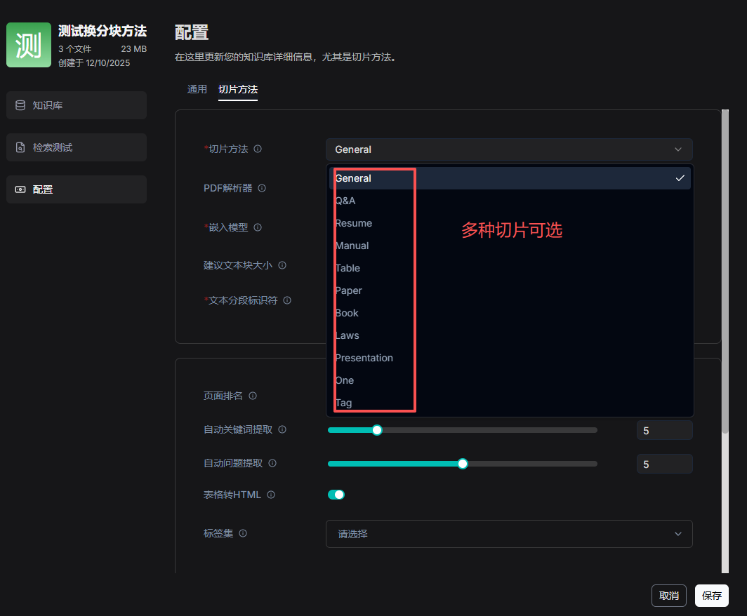 你可以在上传文档后,为每一份文件量身定制最适合它的切分方式: