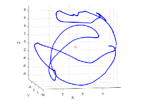 针对XY轴的校准,将电子罗盘在XY平面内自转,等价于将地球磁场矢量绕着过点O(γx,γy)垂直与XY平面的法线旋转,而红色的圆为磁场矢量在旋转过程中在XY平面内投影的轨迹。这可以找到圆心的位置为((Xman+Xmin)/2,(Ymax+Ymin)/2)同样将设备在XY平面内旋转可以得到地球磁场在XY平面上的轨迹圆,这可以求出三维空间中的磁场干扰矢量γ(γx,γy,γz).