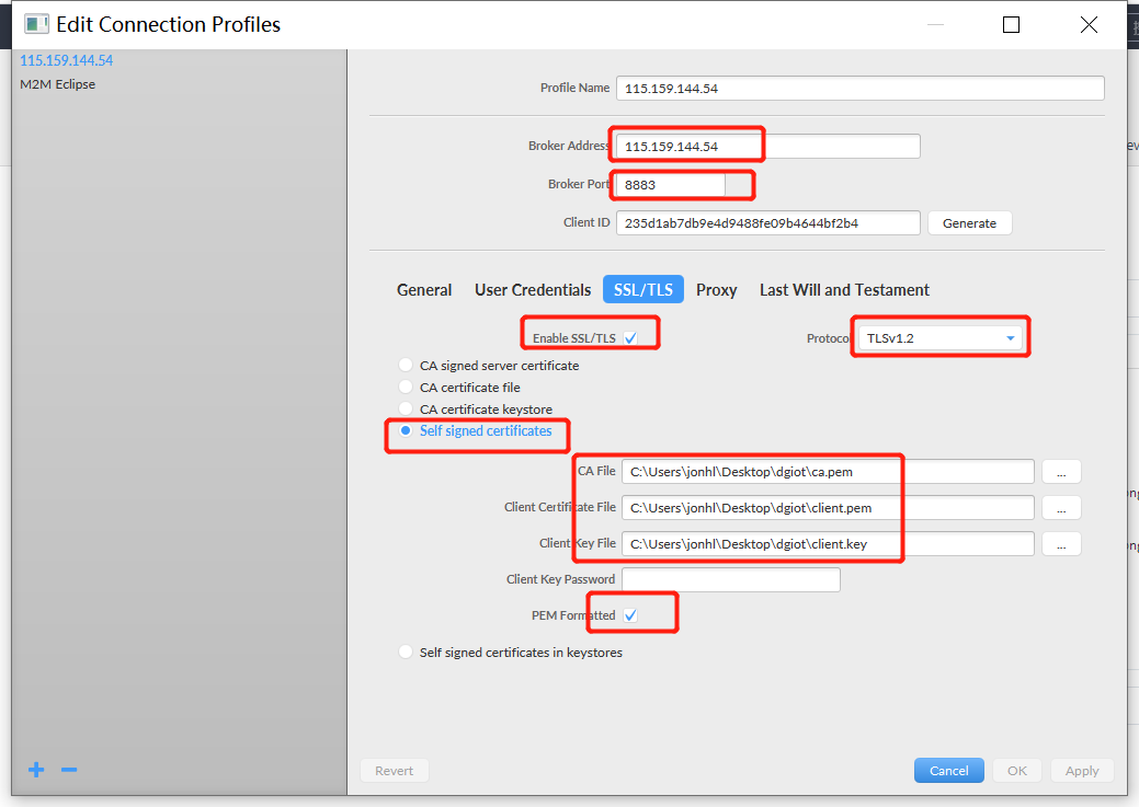本文详细介绍了如何在服务器上部署TSL证书,并指导读者如何将其烧入设备,以实现MQTT.fx1.5的mqtts连接,包括关闭SSLSecure、重启通道及证书放置要求。特别关注了使用证书后的端口调整和连接设置细节。
