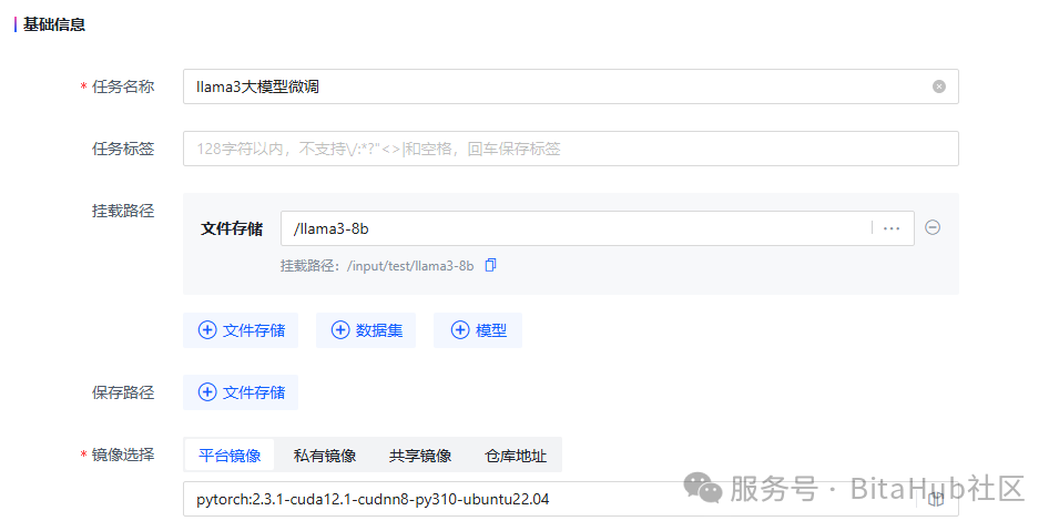 首先,从镜像地址 https://hf-mirror.com/meta-llama/Meta-Llama-3-8B 拉取 Llama3-8B 预训练模型至本地,并将其挂载到 BitaHub 工作台的文件存储中。在BitaHub工作台创建开发环境,选择单卡4090GPU,并通过JupyterLab访问方式进入开发环境。
