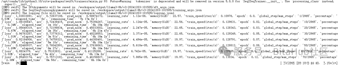 训练模型需要通过一系列参数来精确控制训练过程。下面是本次微调 Llama3-8b 模型的完整训练命令:
