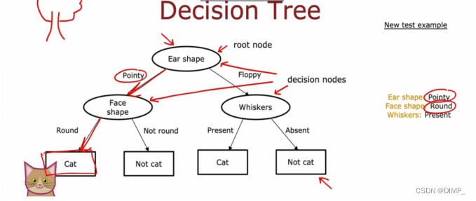 前面的决策树都用了进行分类,而决策树中的回归树是构造了一个回归问题,它的每个节点(不一定是叶子节点)都会得一个预测值。比如:根据耳朵形状、面部形状、胡须来预测体重的回归问题。