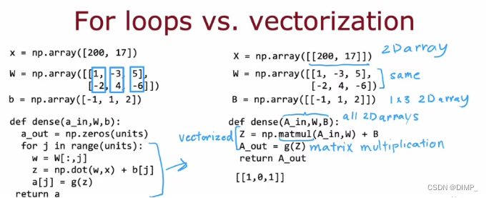 通过矩阵乘法,可以矢量化神经网络,效率提高