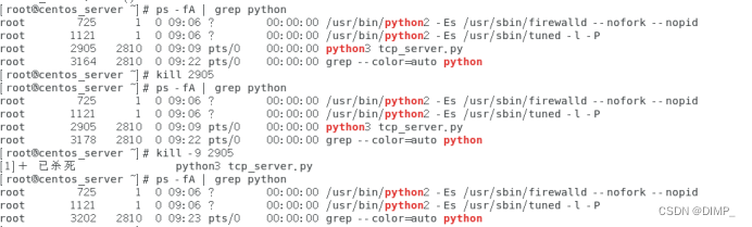 利用`ps -fA | grep python`命令查找正在运行的python进程, 通过向服务器发送信号来停止服务器,杀死对应的进程: