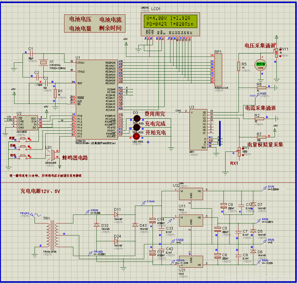 包含显示电路,指示灯电路,按键电路,液晶显示电路,电流、电压、电量采集电路,电源电路等。功能如图所示: