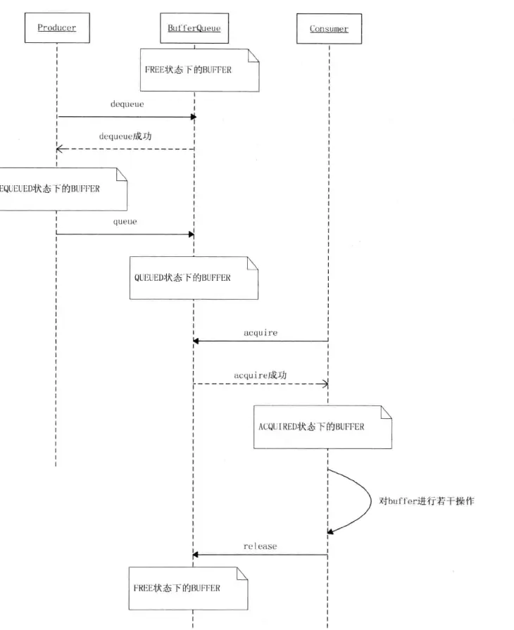 1)应用需要刷新UI,获取一个buffer的缓冲区,这个操作就是dequeue。经过dequeue以后,该buffer被producer锁定,其他Owner就不能插手了。