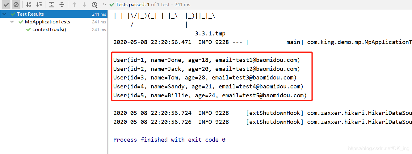(1, 'Jone', 18, 'test1@baomidou.com'),