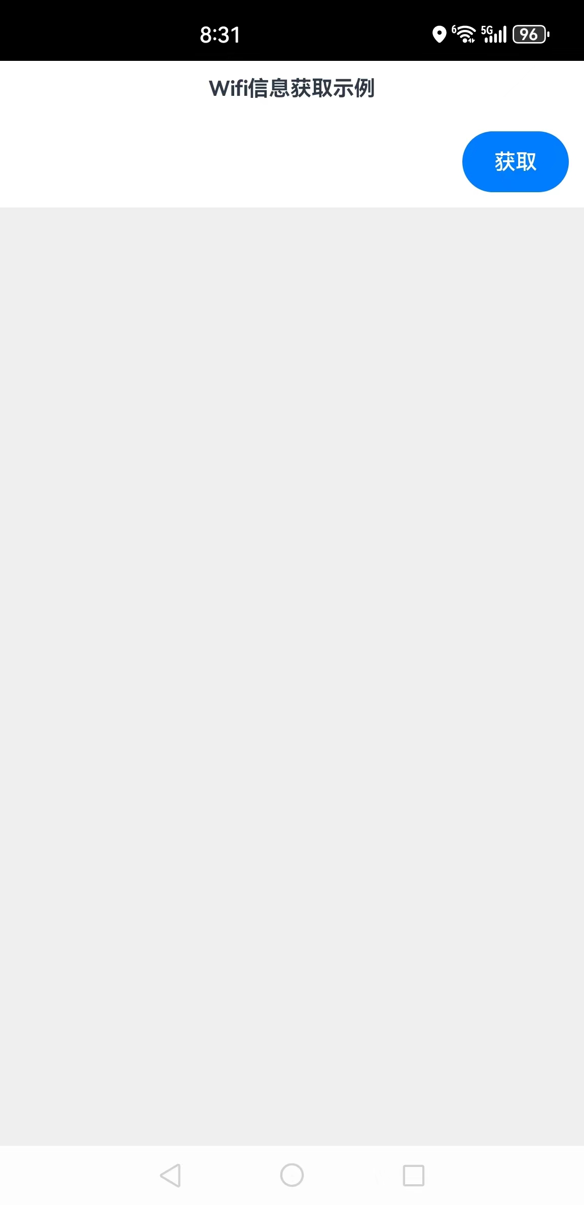 本示例会获取当前设备的Wifi信息,运行后的初始界面如下所示: