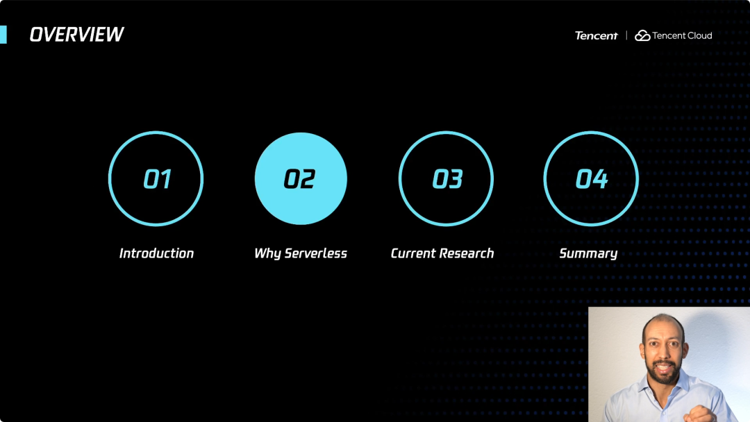 首先,我将从一个简短的自我介绍开始,包括我的背景、我的经验以及 Serverless 计算相关的工作。然后,我将深入讲解,Serverless计算从何而来,其中体现了哪些核心概念和理念?我将会从有点学术的角度来讲,但我真的希望你能从中学到一些东西。随后,我将讨论当前的一些研究趋势,最后是总结。