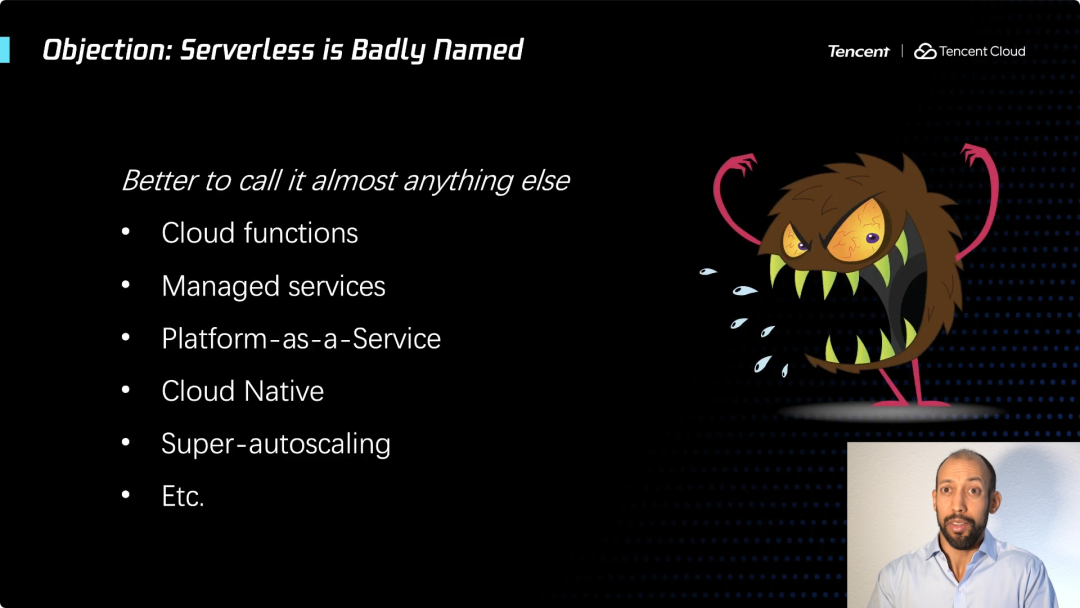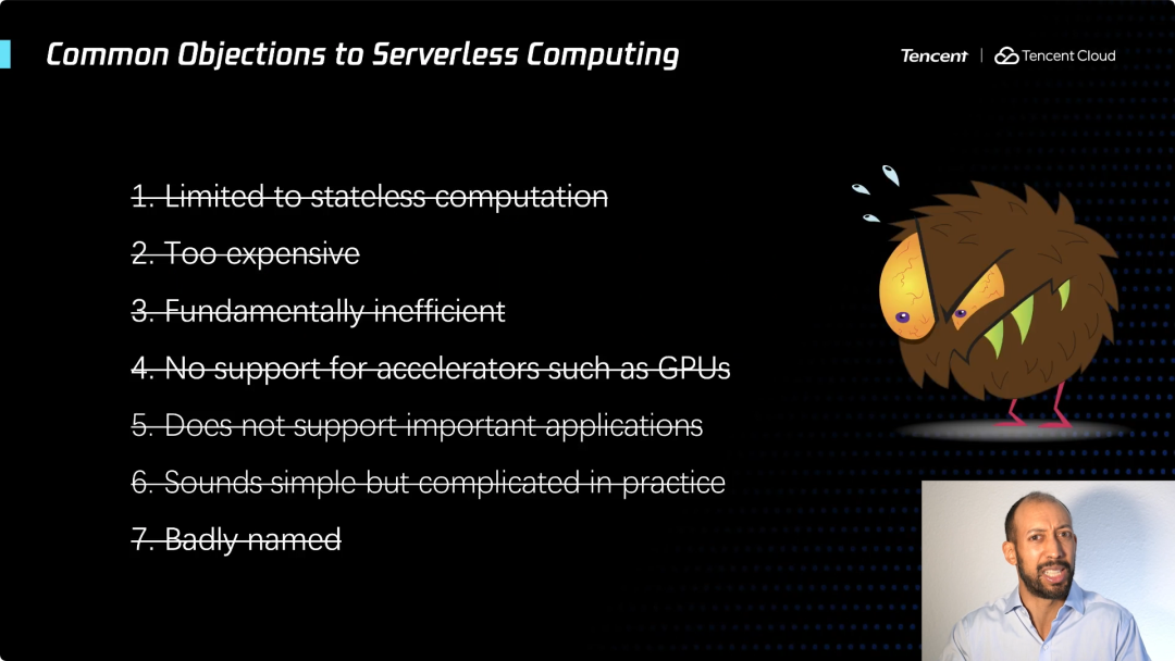 如果从学术界的角度,我可以给你们一些成果的展示,几乎所有这些反对观点描述的问题,都取得了重大进展。但仍有一个还在坚持 ... Serverless 这个名字不好。