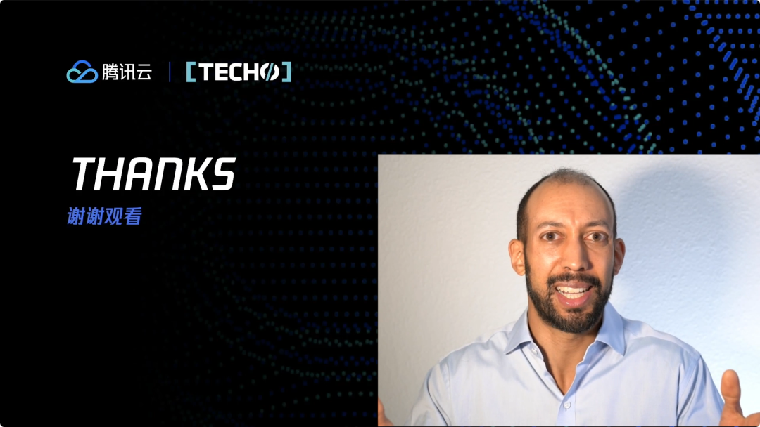感谢大家的聆听,非常感谢腾讯云邀请我在这里演讲。祝你度过愉快的一天,并享受接下来的 Techo 会议环节。