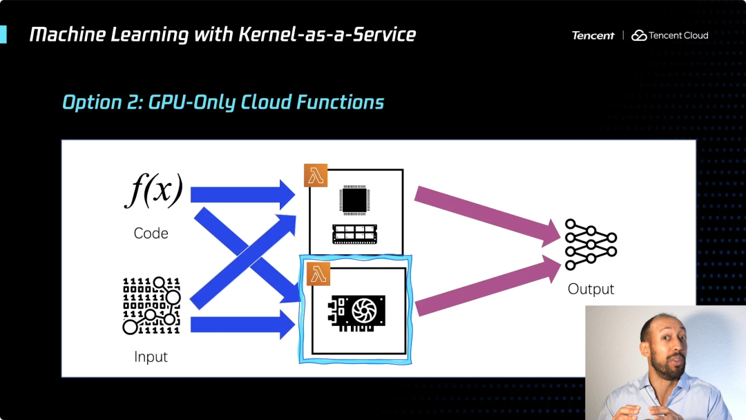 例如,一种选择是让每个云函数都附带一个GPU。所以如果你有很多云函数在运行,你会得到很多的GPU和CPU。