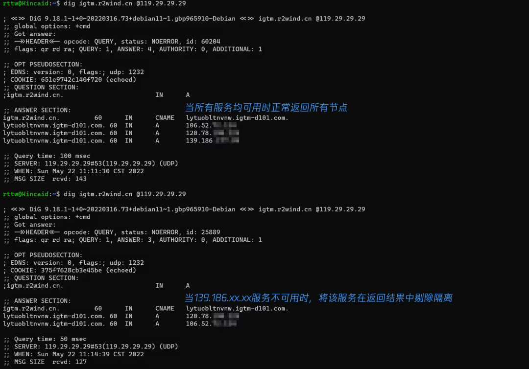 如果 139.186.xxxx 服务器由于故障不能响应请求,DNS 会自动将请求转到其他健康的服务器,这样用户就不会感受到服务中断。