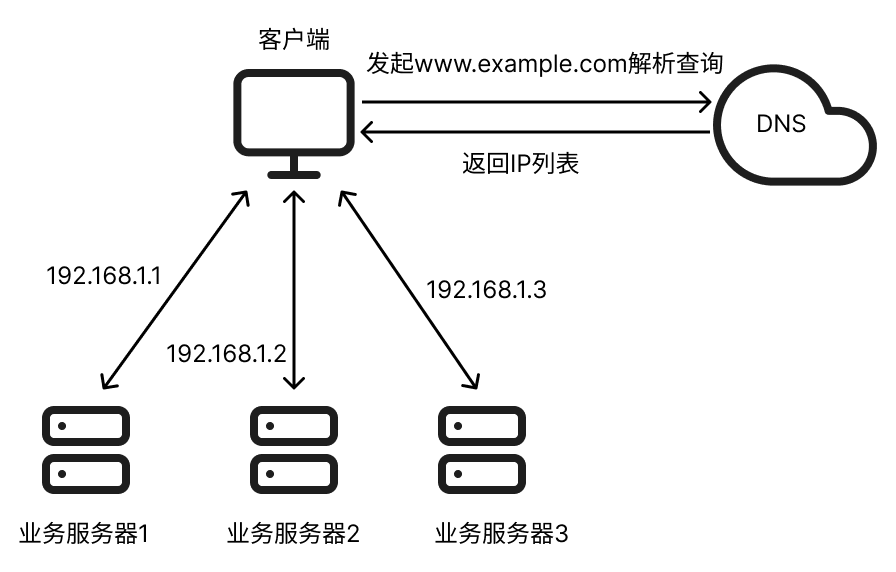当你在浏览器中输入一个网址,浏览器通过 DNS 请求得到这个网址对应的 IP 地址。通常,DNS 服务器会将一个域名映射到多个 IP 地址,这样一旦有用户访问网站时,DNS 会随机或根据某些策略(如轮询)将用户的请求指向不同的服务器。