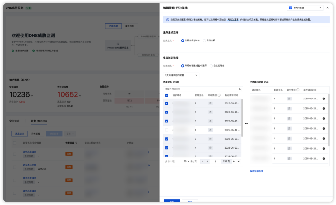 在重保等关键时期,支持针对企业网络的出向域名访问行为进行基线学习。