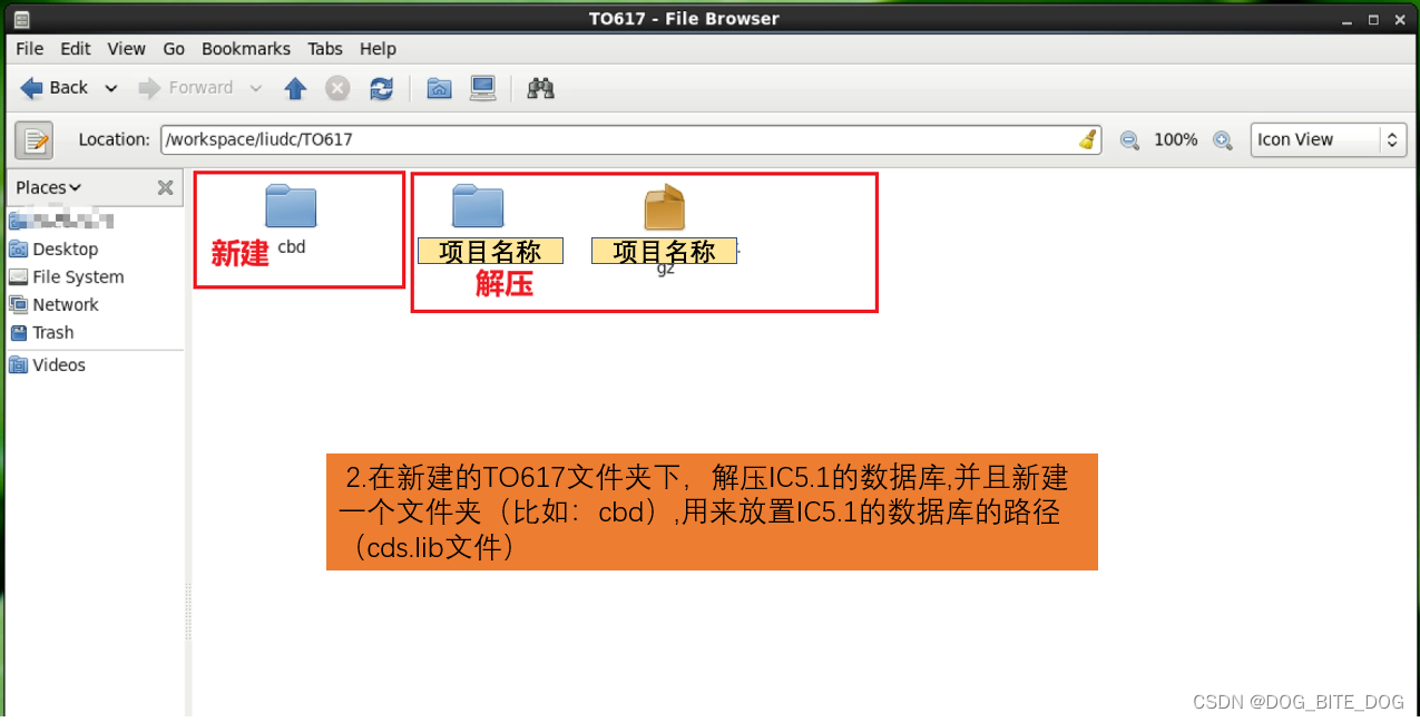 2.在新建的TO617文件夹下,解压IC5.1的数据库,并且新建一个文件夹(比如:cbd),用来放置IC5.1的数据库的路径(cds.lib文件)