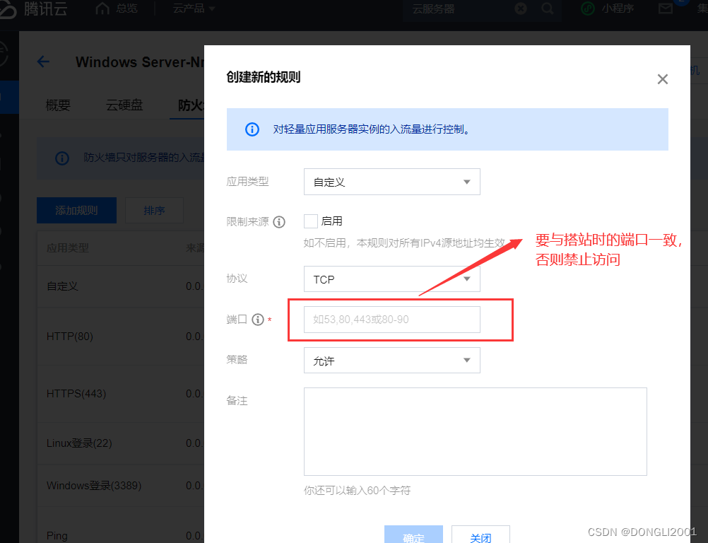 - 在这里可以添加限制,是否允许自己定义的端口可以访问