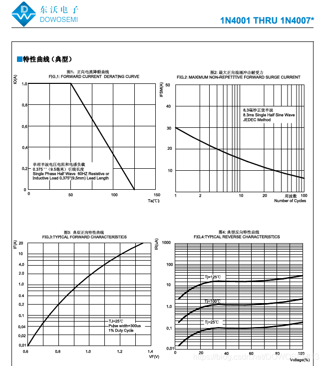 1N4007是一种硅材料整流二极管,把方向交替变化的交流电换成单一方向的脉冲直流电,广泛应用于各种交流变直流的整流电路中。直插二极管1N4007,低频整流二极管,正向平均电流1A,耐压1000V,封装DO-41,应用范围极其广泛。虽然很多客户都知道二极管1N4007这个物料,但是有关1N4007二极管参数和特性,却略知一二。接下来二极管厂家东沃DOWO重点要分享的是直插整流二极管1N4007的参数和特性,看完就明白了。