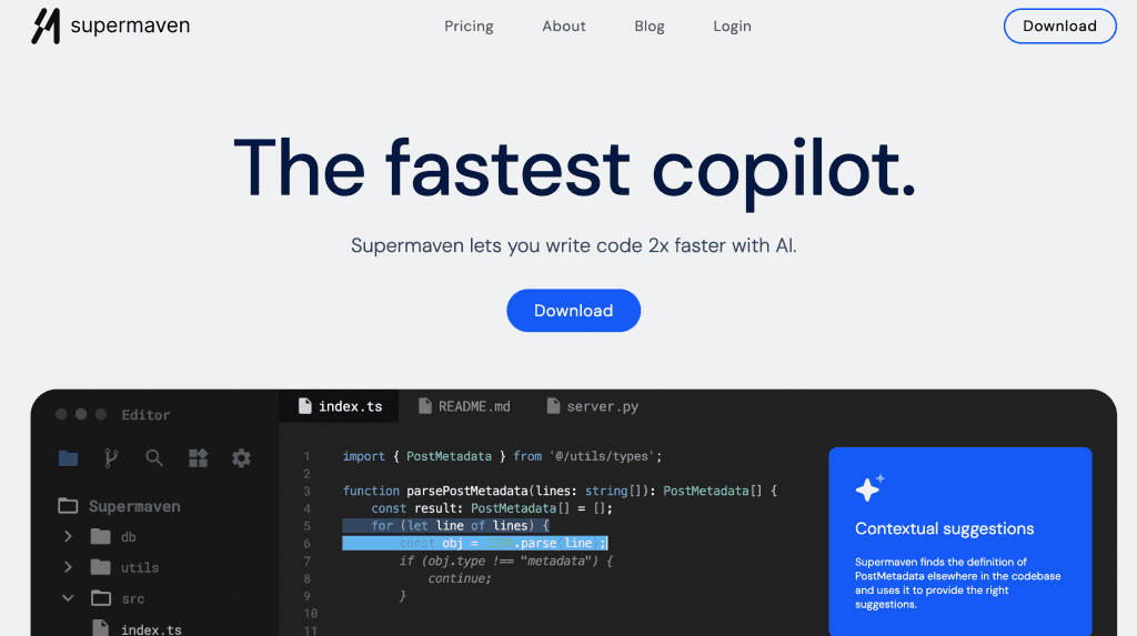 DigitalOcean 的另一个客户 Supermaven 打造了一个 AI 助手,帮助开发者更快更好地编写代码,它集成了主流的IDE,并自己开发训练了代码补全模型,这也是目前行业里最快的模型之一,它提供超过 30 万个token的上下文窗口。