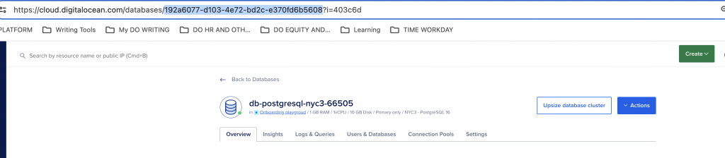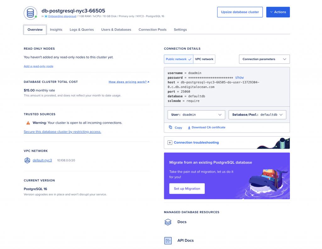 "uri": "postgresql://doadmin:PASSWORD@private-db-postgresql-nyc3-66505-do-user-13729304-0.c.db.ondigitalocean.com:25060/defaultdb?sslmode=require",