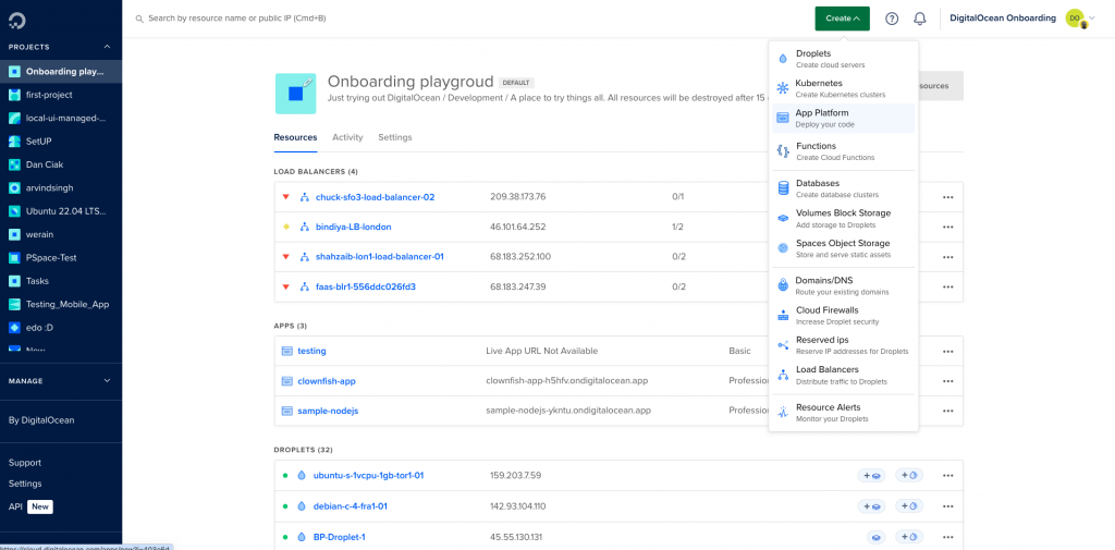 现在登录 DigitalOcean 云门户,导航至Create App -> App Platform。