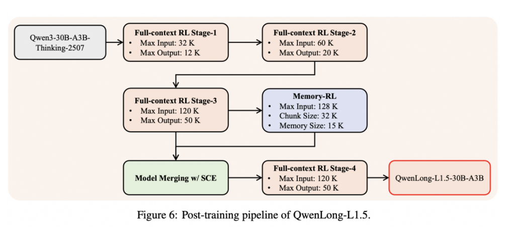 QwenLong-L1.5 提出了一种多阶段记忆融合框架,使模型能够对远超其原生 256K token 上下文窗口的信息进行推理。