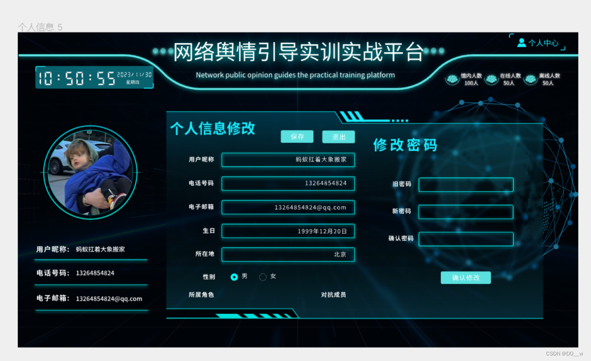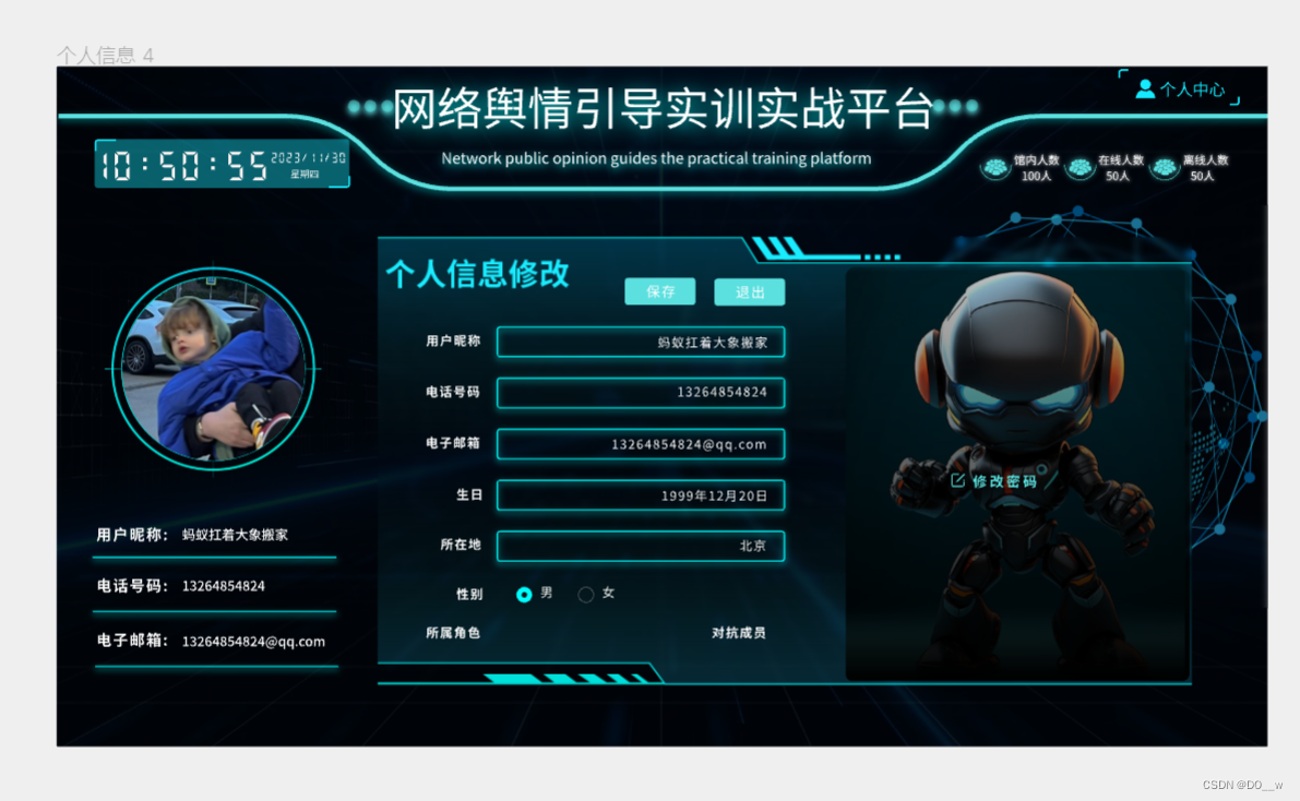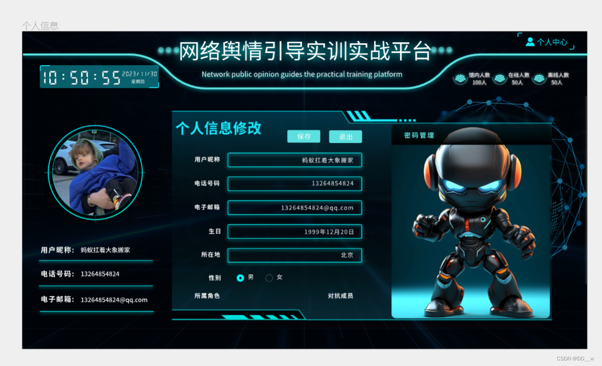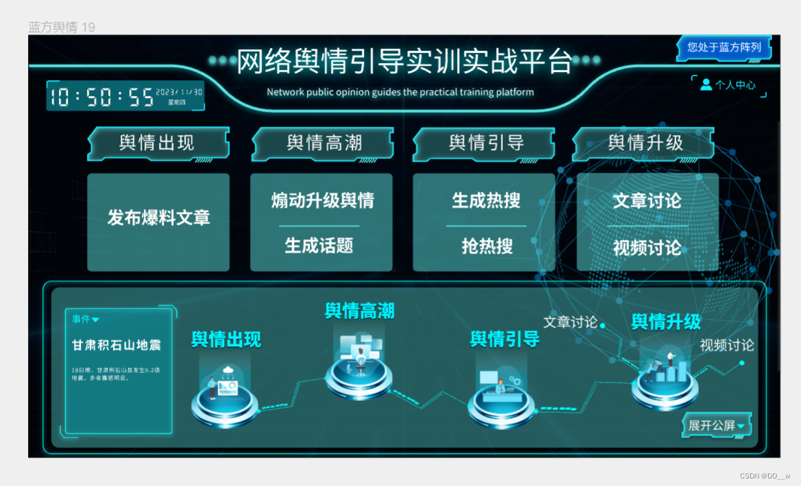 PC端网络舆情引导实训实战平台的蓝方阵营首页界面: