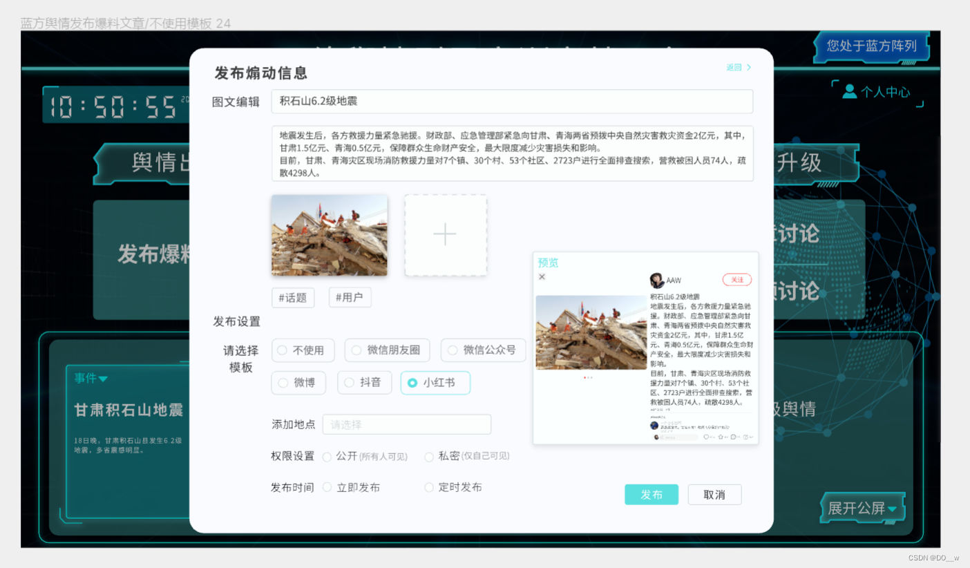 PC端网络舆情引导实训实战平台的编辑发布页面小红书模板: