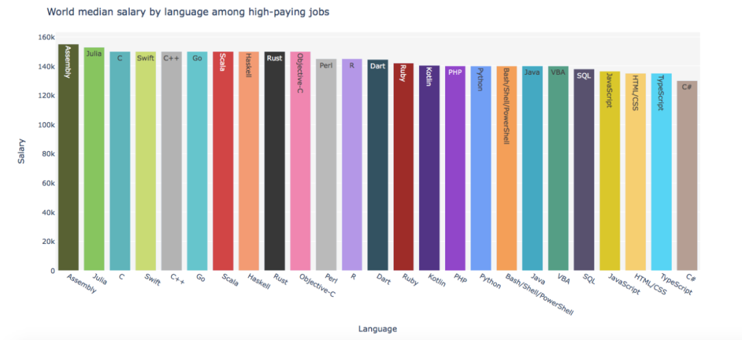 各种编程语言的平均工资水平